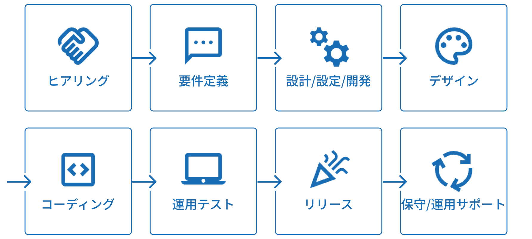 要件定義、フロントのサイトデザインとコーディング、業務機能の構築、リリース後の保守まで全て対応可能です。